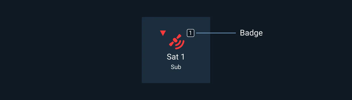 This Badge shows that one event related to a satellite has occurred. You may hyperlink icons to reveal a deeper view of relevant Notification information. You may also link to the general log.