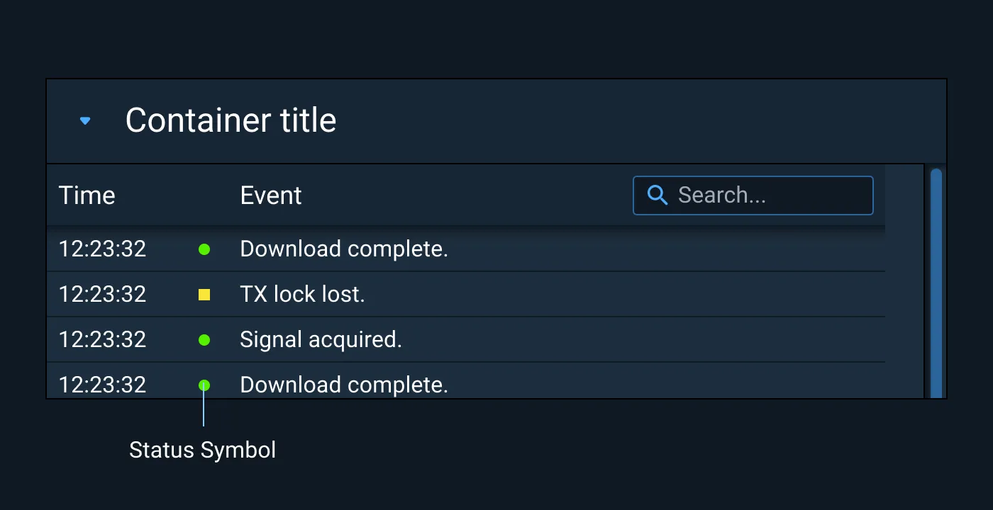 Log notifications can be purely informational, as in a satellite or application that is running normally, or they can be actionable, as with a satellite that may be experiencing an interruption in service which needs to be resolved (while this type of example may be logged, the appropriate pattern would be more disruptive, such as a banner, depending on the level of criticality of the system).
